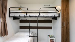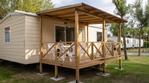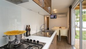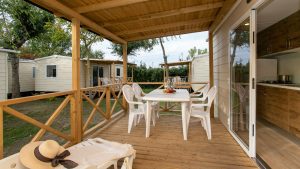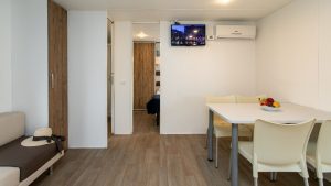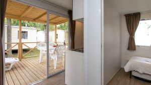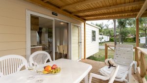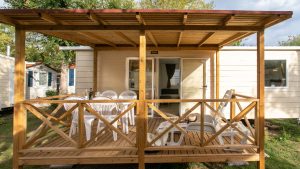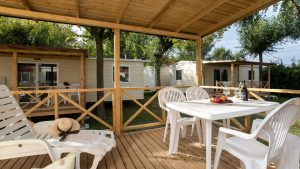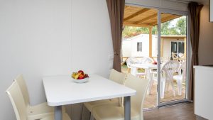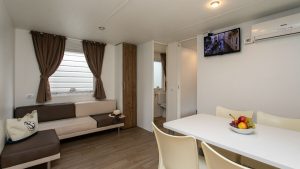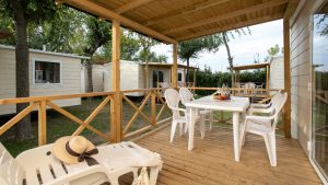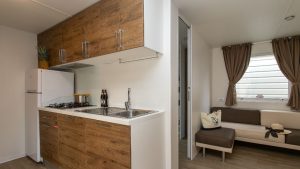 Ganz neue Mobil Heime mit allem Komfort ausgestattet, bis 5 Personen, mit einem komfortablen Bad mit Dusche, Küche, schöne und gemütlich Wohnzimmer, Schlafzimmer mit einem Doppelbett, Zimmer mit zwei Einzelbetten und einen Stockbett, Klimaanlage gegen Gebühr. Draußen ein Patio aus Holz. Alle enthalten Bilder dienen der Veranschaulichung.